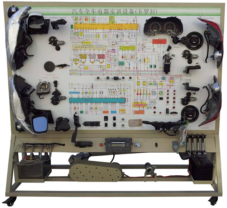 汽車電氣設(shè)備實訓(xùn)室。汽車電器設(shè)備實訓(xùn)室包含有汽車燈光系統(tǒng)、車載網(wǎng)絡(luò)系統(tǒng)、全車電器系統(tǒng)、汽車啟動系統(tǒng)、汽車空調(diào)系統(tǒng)、全車線路試驗臺、等實訓(xùn)教學(xué)設(shè)備。該實訓(xùn)室可以承擔(dān)《汽車構(gòu)造》、《汽車電器設(shè)備》、《汽車電控系統(tǒng)》、《汽車檢測與診斷》等課程的實踐教學(xué)任務(wù)?梢杂糜谘芯俊⒎治鋈囯娖飨到y(tǒng)、燈光系統(tǒng)、儀表系統(tǒng)等電器設(shè)備的電路及功能。利用這些系統(tǒng)進行實踐教學(xué),使學(xué)生熟悉汽車電器的結(jié)構(gòu)和工作原理,掌握各個系統(tǒng)的基本組成電路,掌握主要電路的檢測方法和系統(tǒng)的故障特征,從而具有一定的檢測和調(diào)校能力。