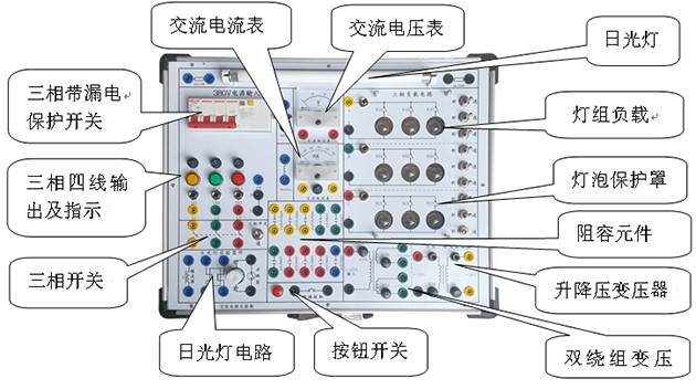 交流電路實(shí)驗(yàn)箱 主要是進(jìn)行"電工學(xué)""電路原理"中的強(qiáng)電部分實(shí)驗(yàn),如單相交流電路、三相電路、日光燈電路實(shí)驗(yàn)。本實(shí)驗(yàn)箱由模塊單元和元件庫相結(jié)合的板面構(gòu)成,全部采用歐洲標(biāo)準(zhǔn)的安全插座和安全實(shí)驗(yàn)導(dǎo)線, 連線方便,接觸可靠,而且壽命長、效率高,有效預(yù)防觸電隱患。實(shí)驗(yàn)面板上印有元件符號及主要參數(shù)便于學(xué)生識(shí)別。實(shí)驗(yàn)箱結(jié)構(gòu)緊湊實(shí)用直觀,安全可靠,能有效培養(yǎng)學(xué)生的動(dòng)手能力,維修方便、簡捷。可滿足各類高、中等院校及職業(yè)技術(shù)類院校開設(shè)的電工典型實(shí)驗(yàn)。