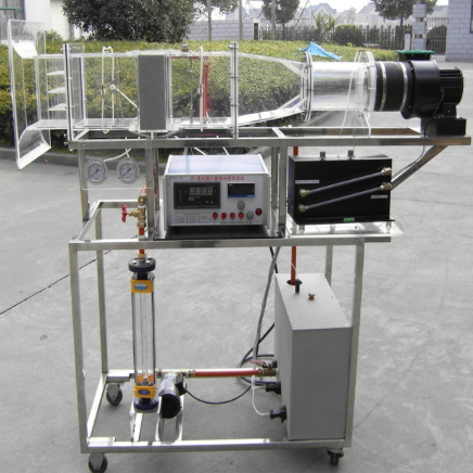 循環(huán)防腐水泵,轉(zhuǎn)子流量計(jì),翅片管式換熱器,風(fēng)洞實(shí)驗(yàn)段,離心式風(fēng)機(jī),自動(dòng)調(diào)節(jié)風(fēng)門,笛形管及差壓測風(fēng)速裝置,加熱由固體調(diào)壓模塊無級調(diào)節(jié),控制測試儀表箱,不銹鋼加熱水箱,巡檢儀顯示溫度、水和風(fēng)的阻力及風(fēng)速,不銹鋼臺(tái)架及控制屏。