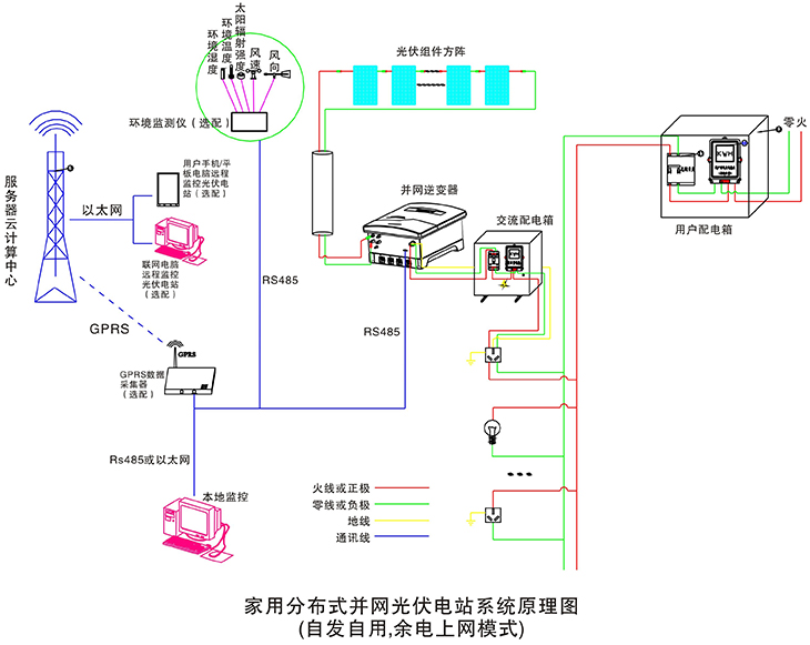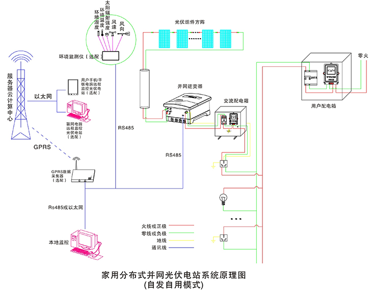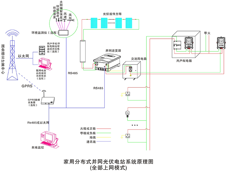 在晴朗的白天,裝在屋頂上的光伏組件發(fā)出的直流電經(jīng)過并網(wǎng)逆變器逆變成與電網(wǎng)同頻率同相位的單相交流電給負(fù)載進(jìn)行供電,在夜晚或陰雨天等太陽光照不足的情況下,系統(tǒng)處于待機(jī)狀態(tài),負(fù)載用電全部來自電網(wǎng)。您可以通過系統(tǒng)監(jiān)控軟件來實(shí)時查看系統(tǒng)的運(yùn)行狀態(tài)和故障信息,或者是選配遠(yuǎn)程通訊數(shù)據(jù)采集器,將系統(tǒng)工作數(shù)據(jù)通過GPRS或以太網(wǎng),傳輸?shù)侥氖謾C(jī)、平板電腦或任意一臺聯(lián)網(wǎng)的電腦,以便于您遠(yuǎn)程實(shí)時掌控電站的信息。