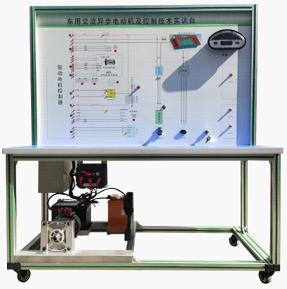 檢測(cè)控制面板(裝有各種檢測(cè)端子,1448×940mm彩色電路圖和工作原理示意圖)、組合儀表、點(diǎn)火開(kāi)關(guān)、電機(jī)控制器、車載充電器與充電接口、DC-DC轉(zhuǎn)換器、鋰動(dòng)力電池組、電動(dòng)車電機(jī)(交流異步電動(dòng)機(jī))、剎車開(kāi)關(guān)、檔位開(kāi)關(guān)、油門控制裝置、大電流繼電器、電源總開(kāi)關(guān)、急停開(kāi)關(guān)、輔助蓄電池(12V45AH)、一體化全鋁合金型材搭建的移動(dòng)臺(tái)架(1500×700×1700mm (帶自鎖腳輪裝置,帶安裝檢測(cè)端子的原理面板,面板1448×940mm)、設(shè)備操作說(shuō)明書。
